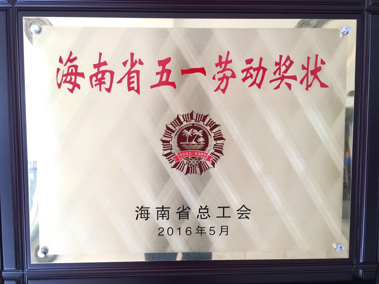 海南省總工會授予瓊海勝達“海南省五一勞動獎狀”稱號