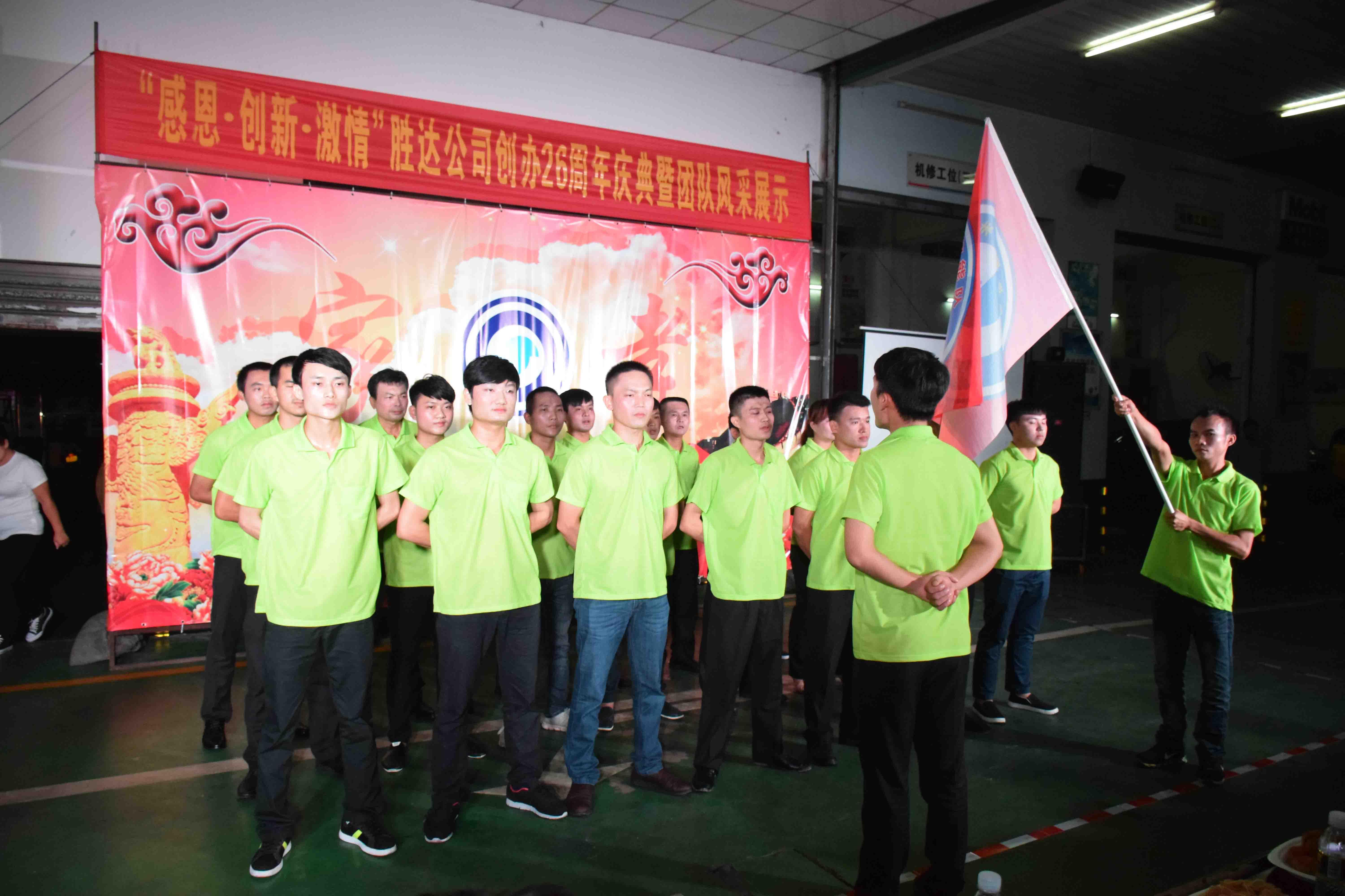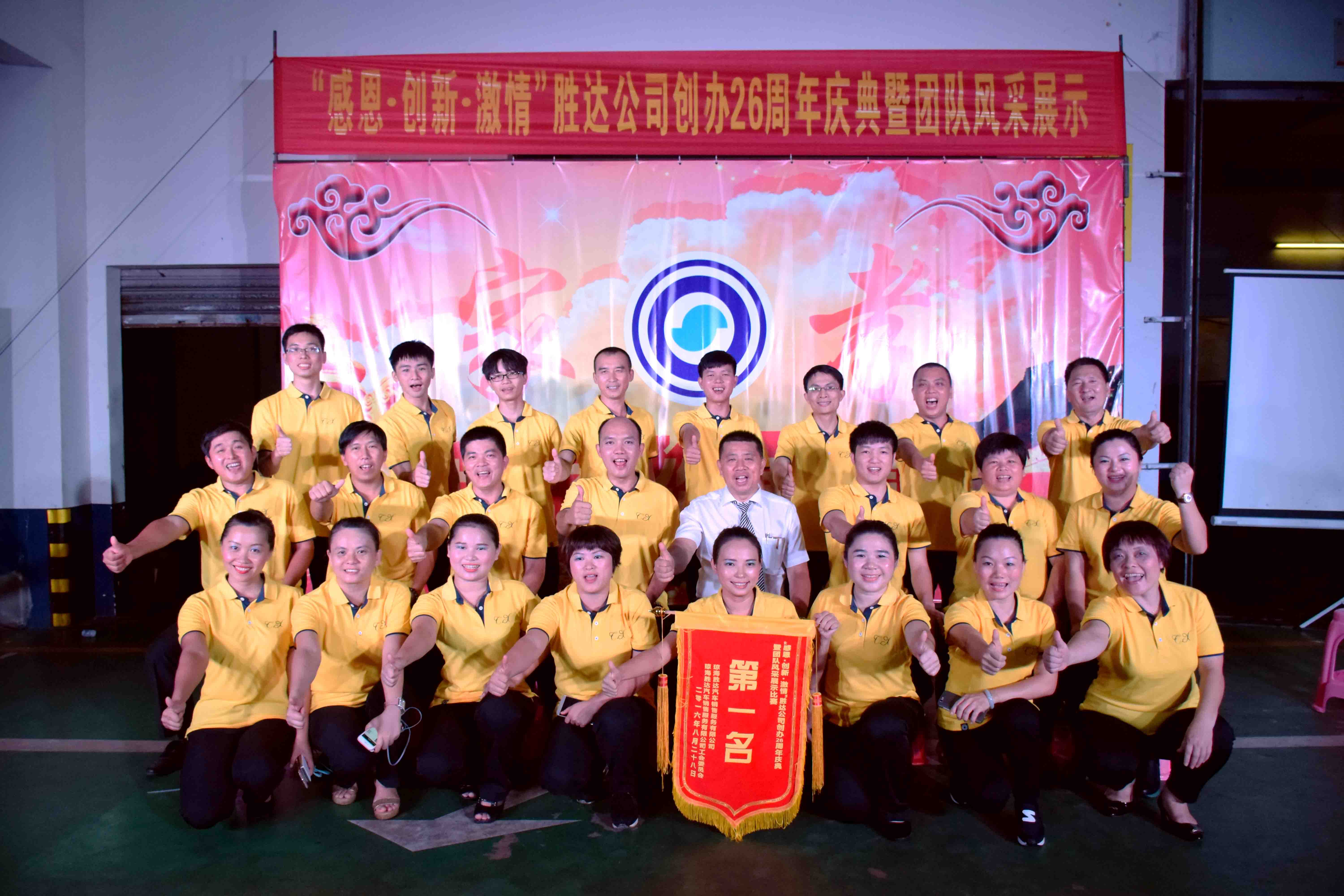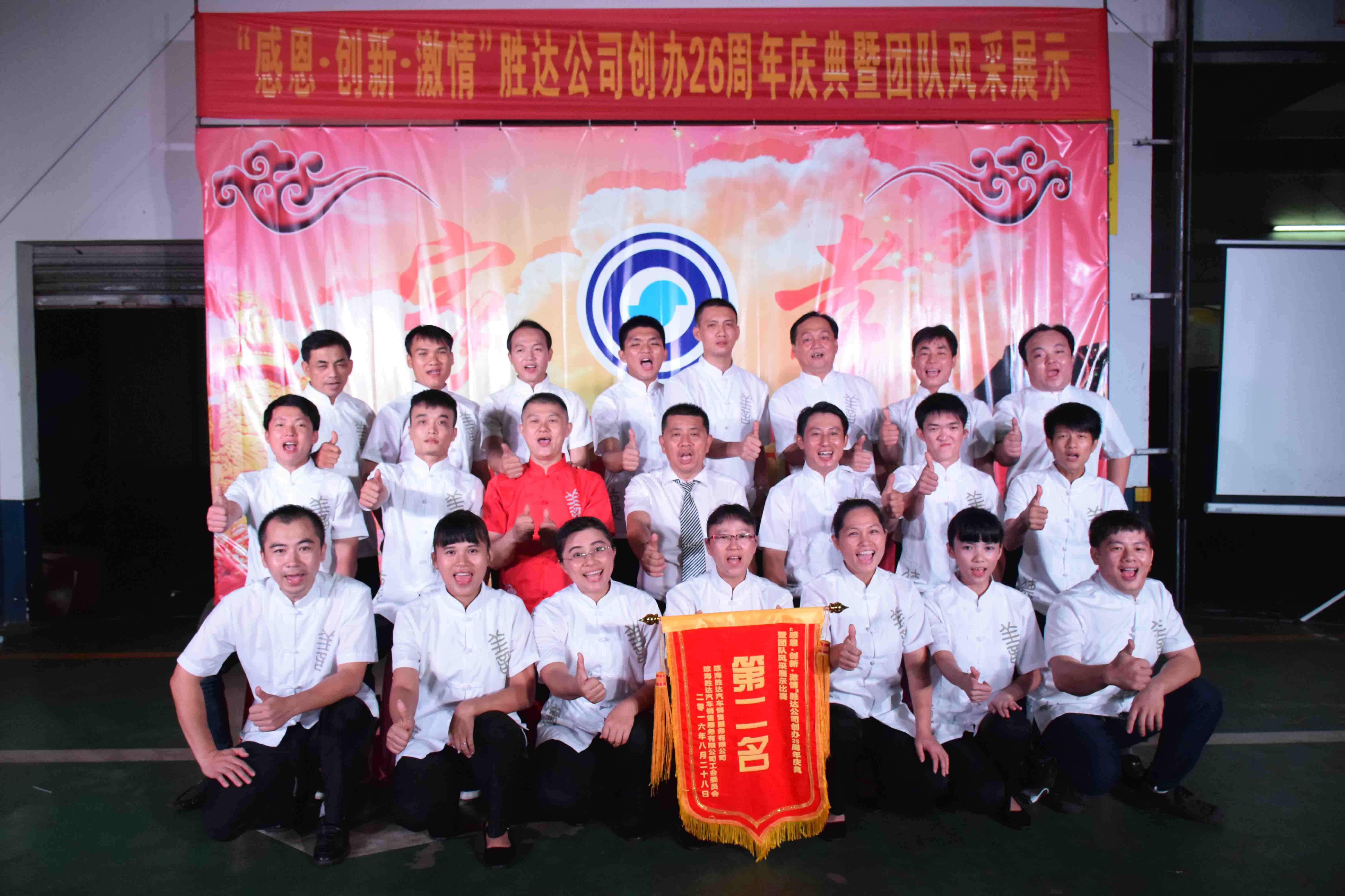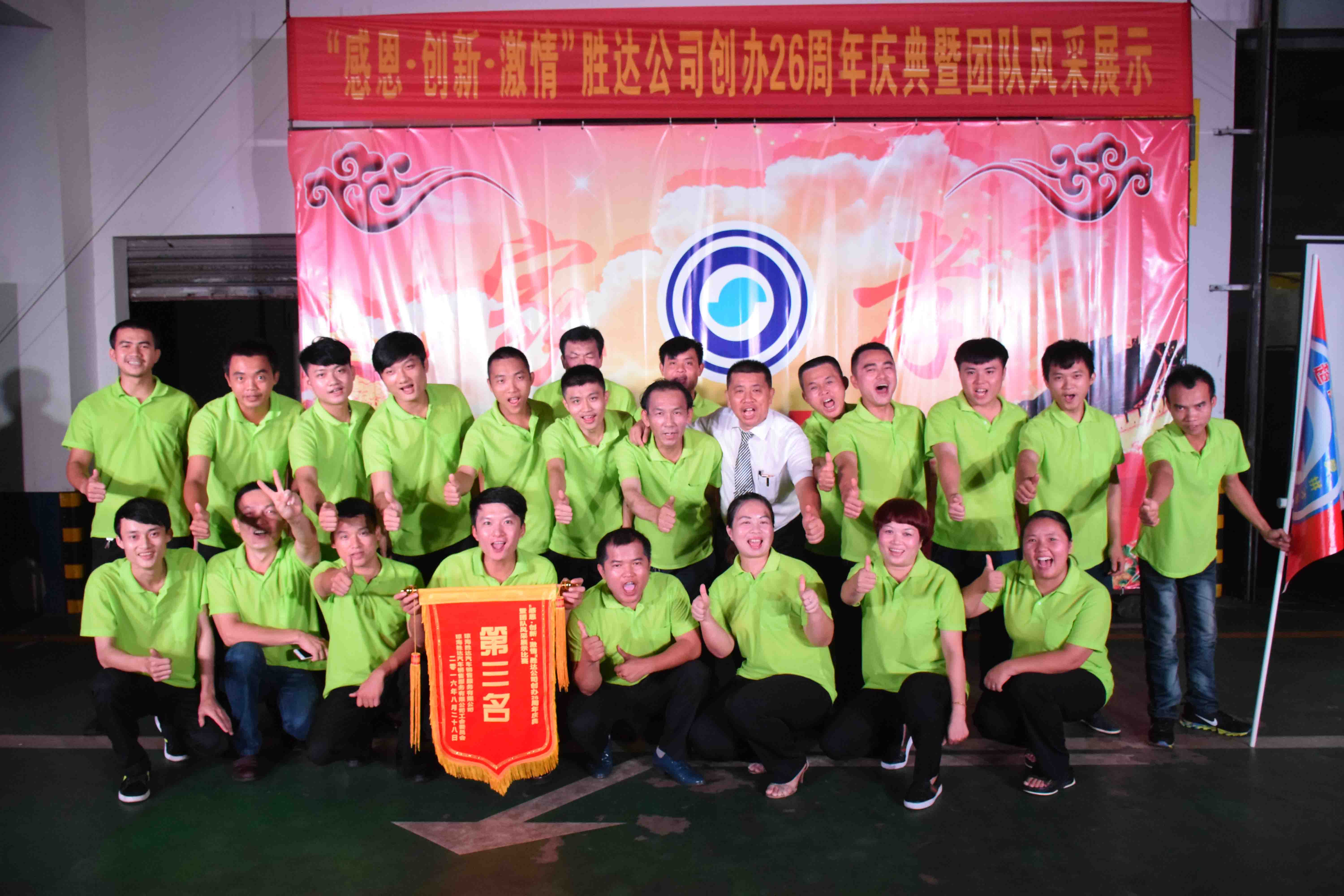 家宴過后20:10分,26周年慶典活動的第二部分團隊風(fēng)采展示比賽在陳總的晚會致辭中拉開了序幕。本次比賽共分為六個團隊,分別是:超越隊(3號店)、神馬隊(2號店)、創(chuàng)新隊(檢測、銷售部)、精英隊(1號店)、天使隊(銀海社區(qū))、超能隊(定安廠),本次的團隊風(fēng)采展示以隊列展示、“快樂晨會”及手語舞《跪羊圖》、《禮運大同篇》、《感恩的心》三選一的方式相結(jié)合,展示我們瓊海勝達(dá)豐富多彩的企業(yè)文化風(fēng)采,并榮幸的邀請幸福人生“智”組的9位學(xué)兄擔(dān)當(dāng)比賽評委,將對各個團隊展示的隊列、早操文化、早操手語舞三部分比賽內(nèi)容進(jìn)行評分。雖然當(dāng)晚一直下著雨,但絲毫沒有影響勝達(dá)家人們的激情展示,每個團隊的家人們個個統(tǒng)一著裝,精神抖擻、氣宇昂揚,盡情的展示著勝達(dá)的企業(yè)文化風(fēng)采。通過本次團隊風(fēng)采展示比賽,勝達(dá)公司多年來堅持以“家·孝”文化與軍事化管理相結(jié)合的管理模式得到了很好的體現(xiàn),通過賽前的訓(xùn)練與比賽讓每一位員工熟悉勝達(dá)企業(yè)文化,尤其是勝達(dá)公司在原有的早會流程加入了特別編寫的“服務(wù)三字經(jīng)”,讓每一位員工熟讀“服務(wù)三字經(jīng)”,使其更加簡明更加清晰的掌握我公司的服務(wù)理念,將為客戶提供更好的服務(wù)。在比賽中穿插的三輪抽獎環(huán)節(jié)為緊張的比賽增加了濃烈的節(jié)日喜慶氣氛。經(jīng)過一輪緊張刺激的比賽,最終“創(chuàng)新隊”以95.39分,領(lǐng)先第二名0.72分的微弱優(yōu)勢奪得冠軍,“精英隊”以94.67的得分位居亞軍,獲得季軍的是定安分廠的“超能隊”?!俺疥牎薄ⅰ吧耨R隊”、“天使隊”則并列優(yōu)勝獎。