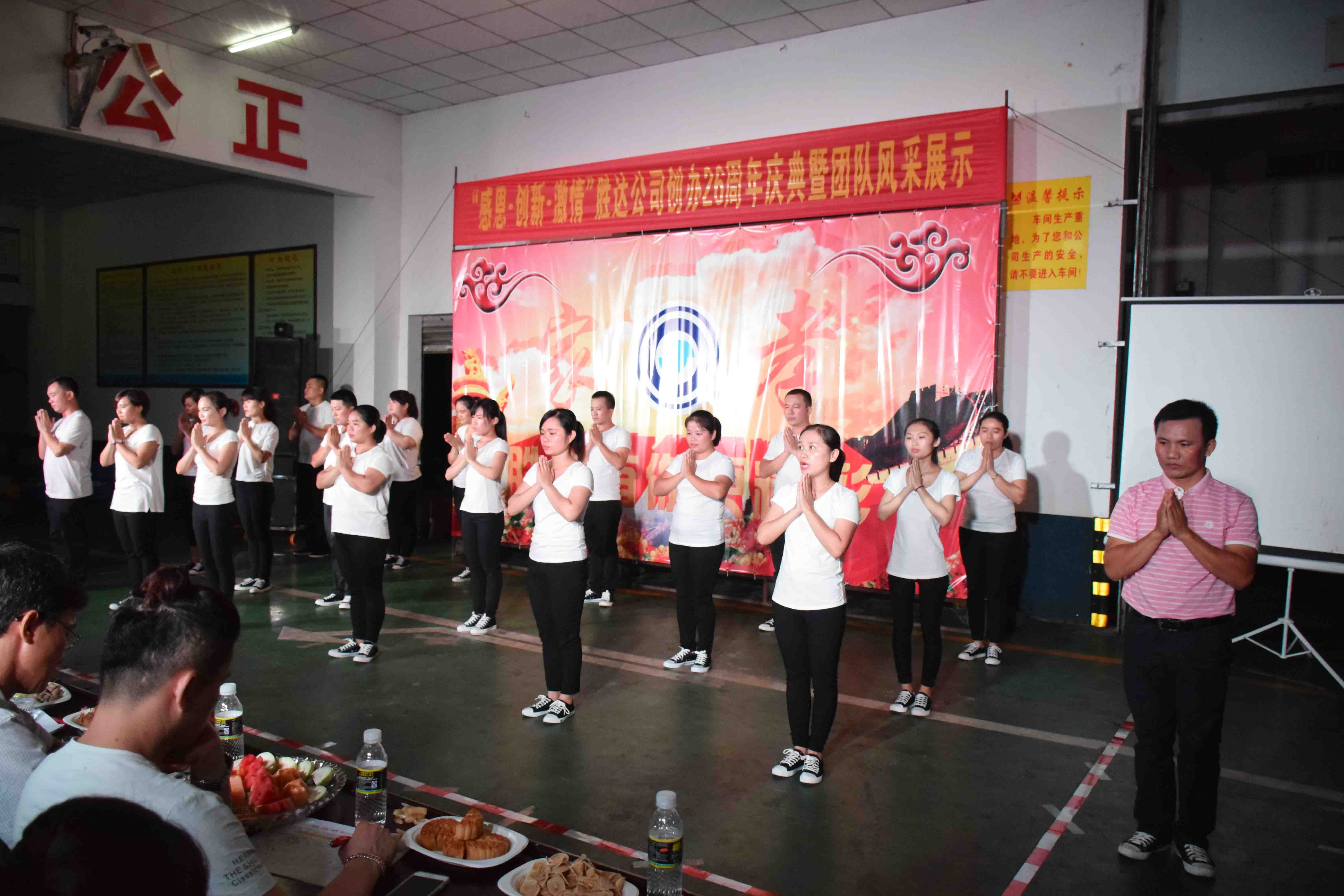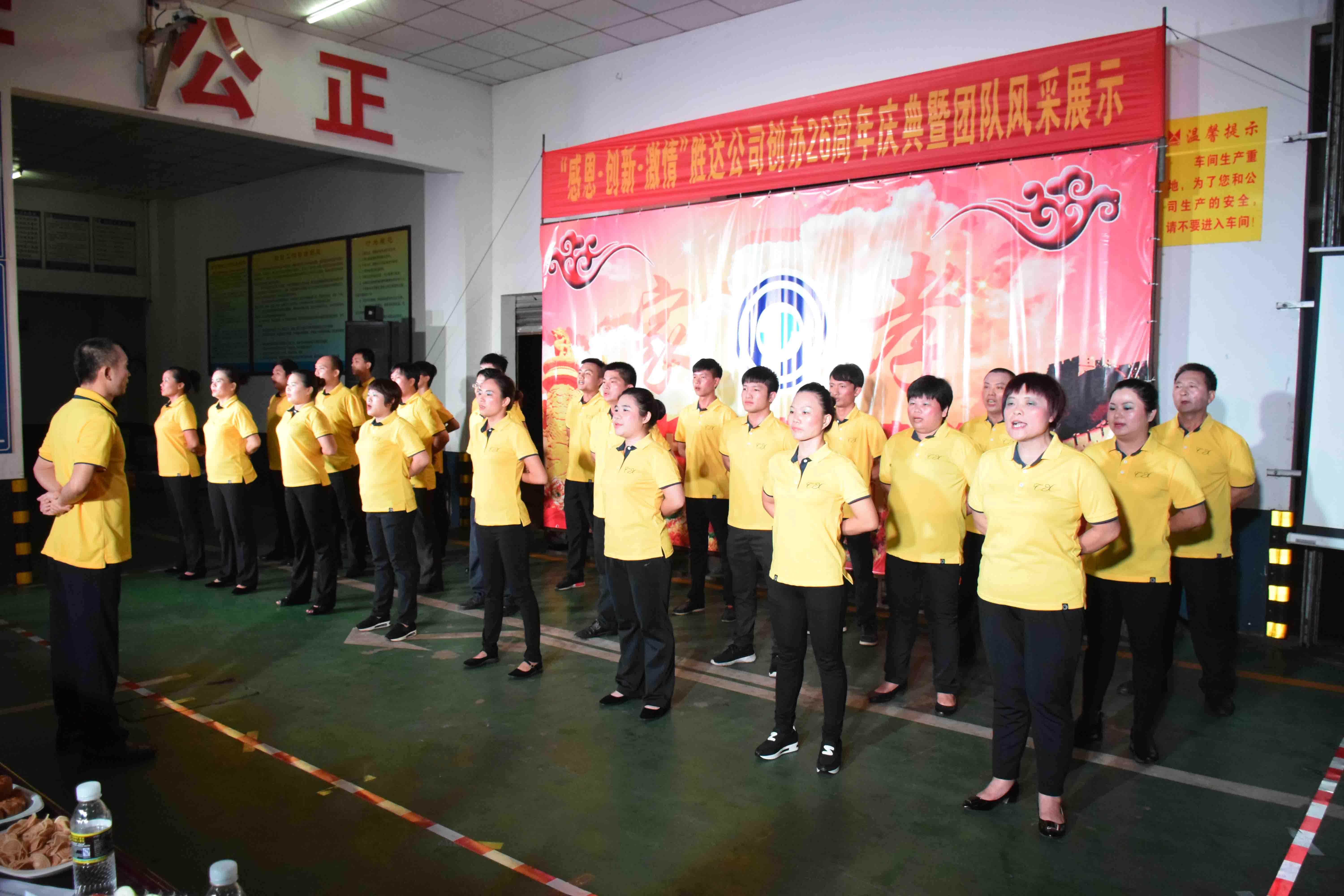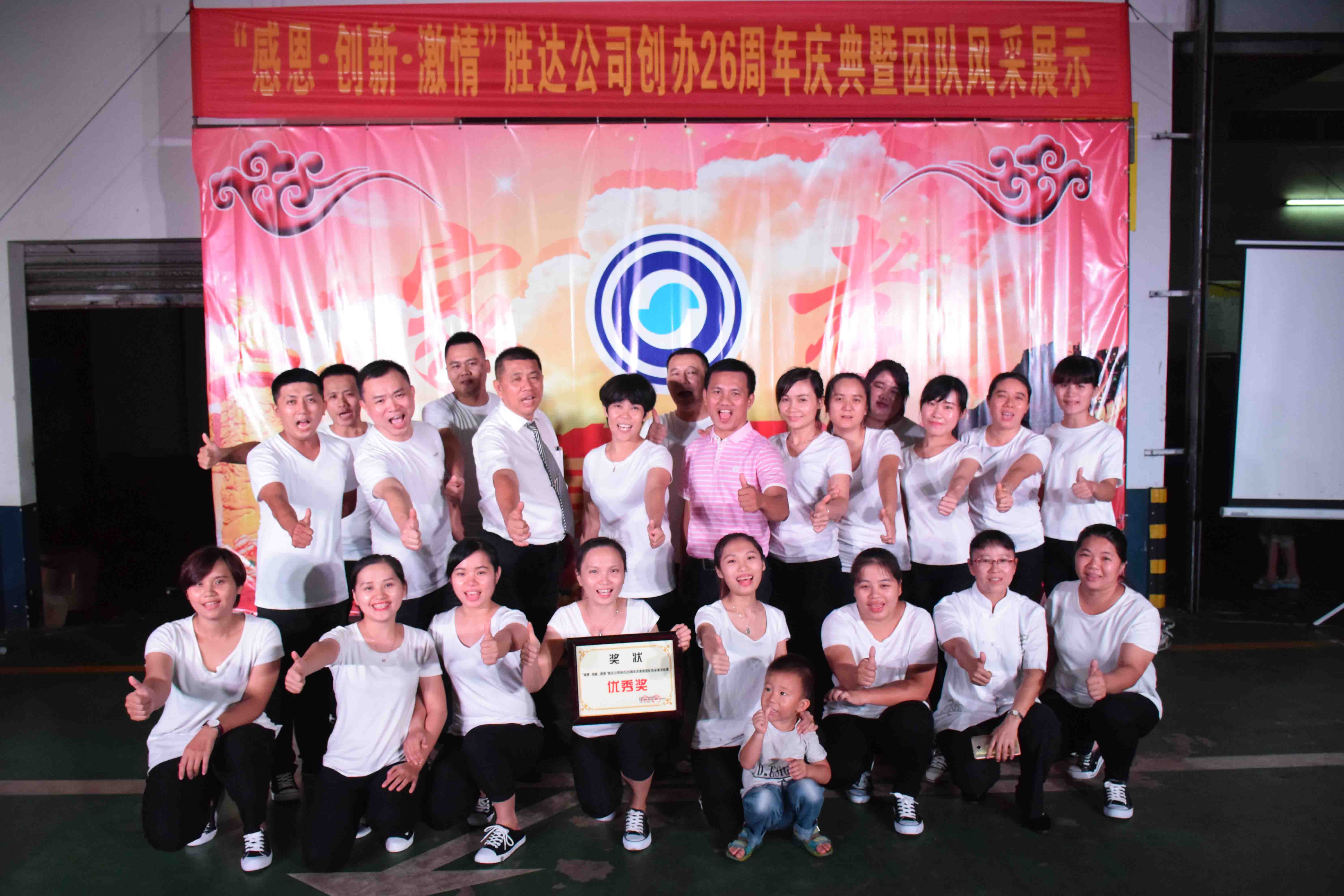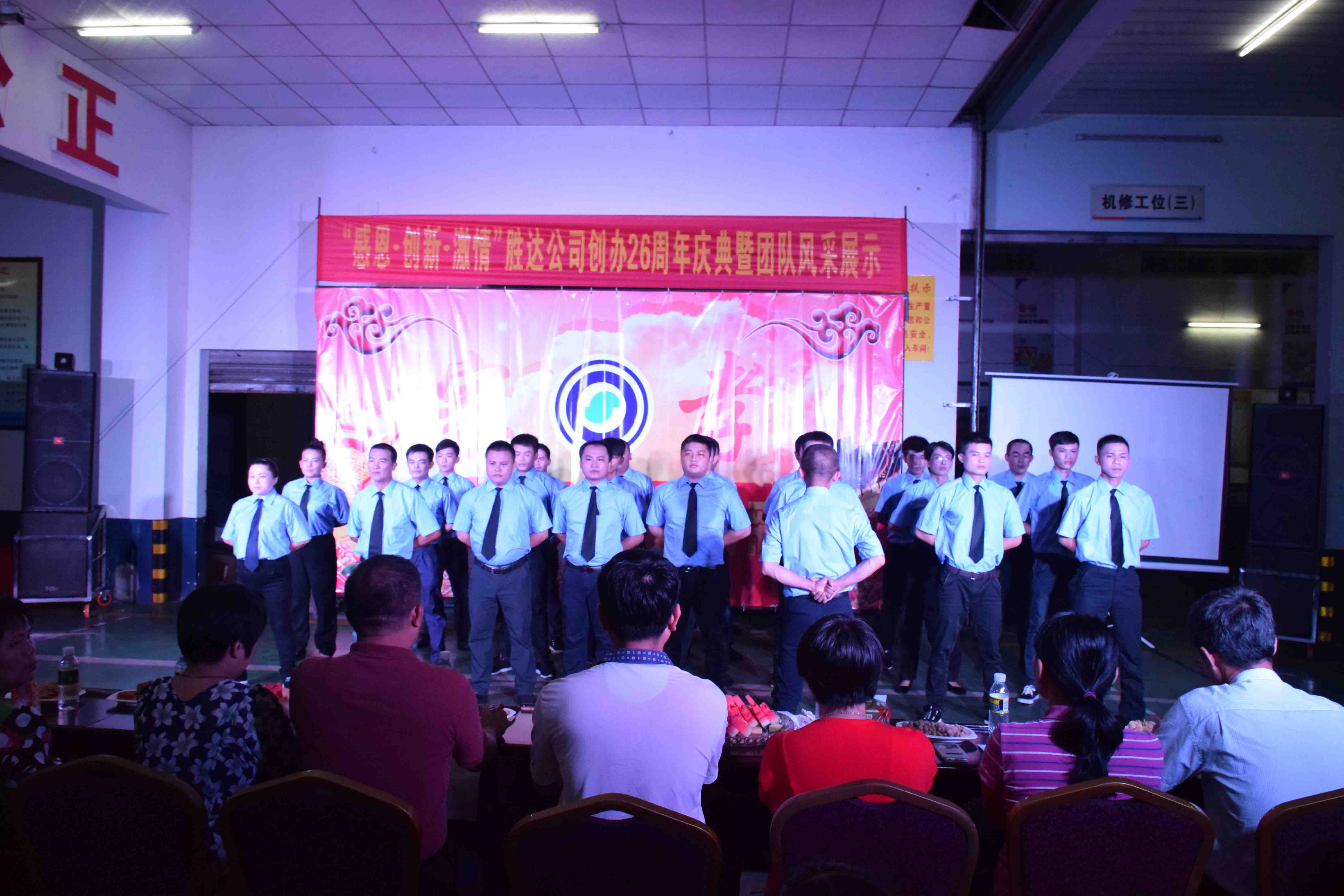家宴過后20:10分,26周年慶典活動的第二部分團隊風(fēng)采展示比賽在陳總的晚會致辭中拉開了序幕。本次比賽共分為六個團隊,分別是:超越隊(3號店)、神馬隊(2號店)、創(chuàng)新隊(檢測、銷售部)、精英隊(1號店)、天使隊(銀海社區(qū))、超能隊(定安廠),本次的團隊風(fēng)采展示以隊列展示、“快樂晨會”及手語舞《跪羊圖》、《禮運大同篇》、《感恩的心》三選一的方式相結(jié)合,展示我們瓊海勝達(dá)豐富多彩的企業(yè)文化風(fēng)采,并榮幸的邀請幸福人生“智”組的9位學(xué)兄擔(dān)當(dāng)比賽評委,將對各個團隊展示的隊列、早操文化、早操手語舞三部分比賽內(nèi)容進(jìn)行評分。雖然當(dāng)晚一直下著雨,但絲毫沒有影響勝達(dá)家人們的激情展示,每個團隊的家人們個個統(tǒng)一著裝,精神抖擻、氣宇昂揚,盡情的展示著勝達(dá)的企業(yè)文化風(fēng)采。通過本次團隊風(fēng)采展示比賽,勝達(dá)公司多年來堅持以“家·孝”文化與軍事化管理相結(jié)合的管理模式得到了很好的體現(xiàn),通過賽前的訓(xùn)練與比賽讓每一位員工熟悉勝達(dá)企業(yè)文化,尤其是勝達(dá)公司在原有的早會流程加入了特別編寫的“服務(wù)三字經(jīng)”,讓每一位員工熟讀“服務(wù)三字經(jīng)”,使其更加簡明更加清晰的掌握我公司的服務(wù)理念,將為客戶提供更好的服務(wù)。在比賽中穿插的三輪抽獎環(huán)節(jié)為緊張的比賽增加了濃烈的節(jié)日喜慶氣氛。經(jīng)過一輪緊張刺激的比賽,最終“創(chuàng)新隊”以95.39分,領(lǐng)先第二名0.72分的微弱優(yōu)勢奪得冠軍,“精英隊”以94.67的得分位居亞軍,獲得季軍的是定安分廠的“超能隊”?!俺疥牎薄ⅰ吧耨R隊”、“天使隊”則并列優(yōu)勝獎。
