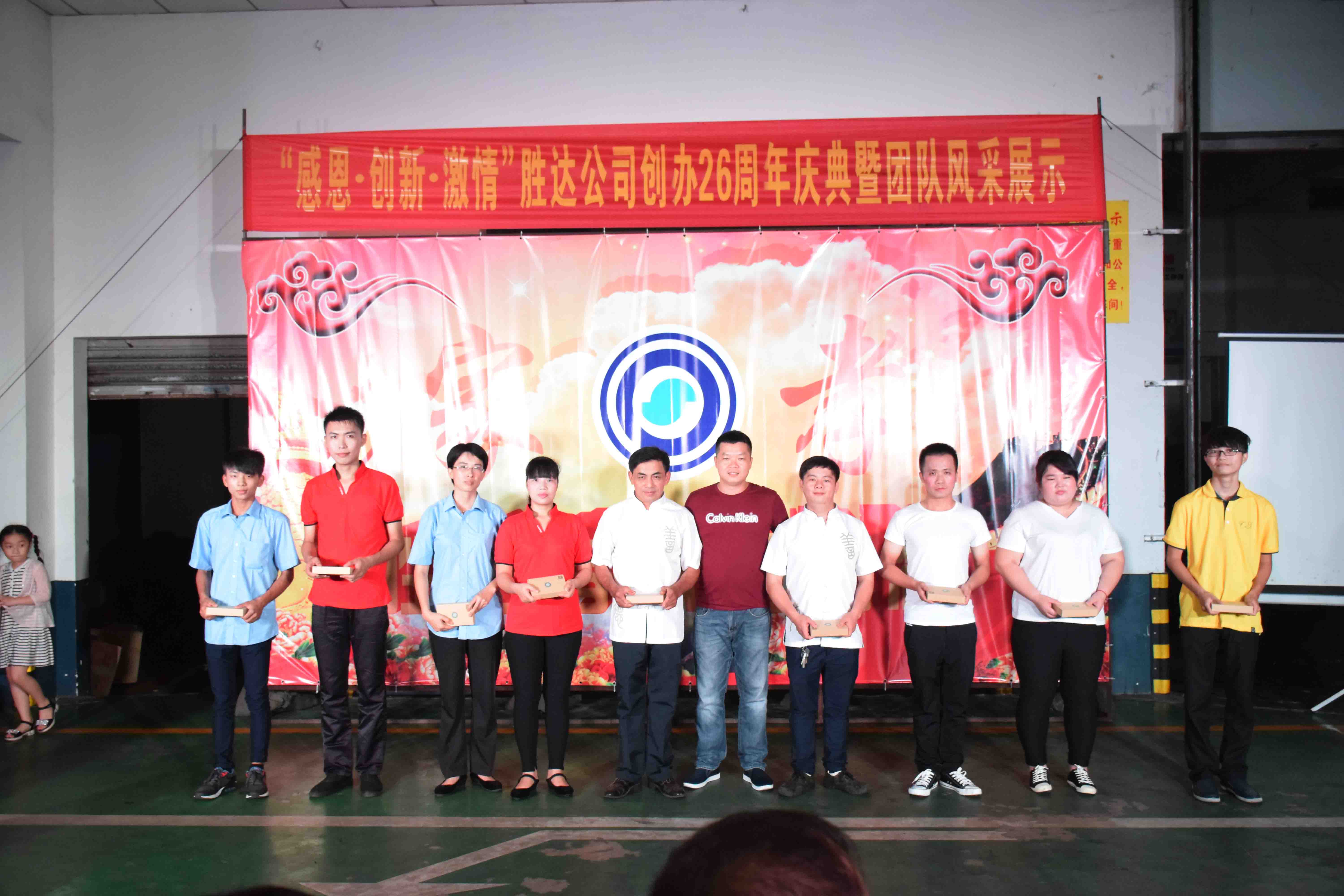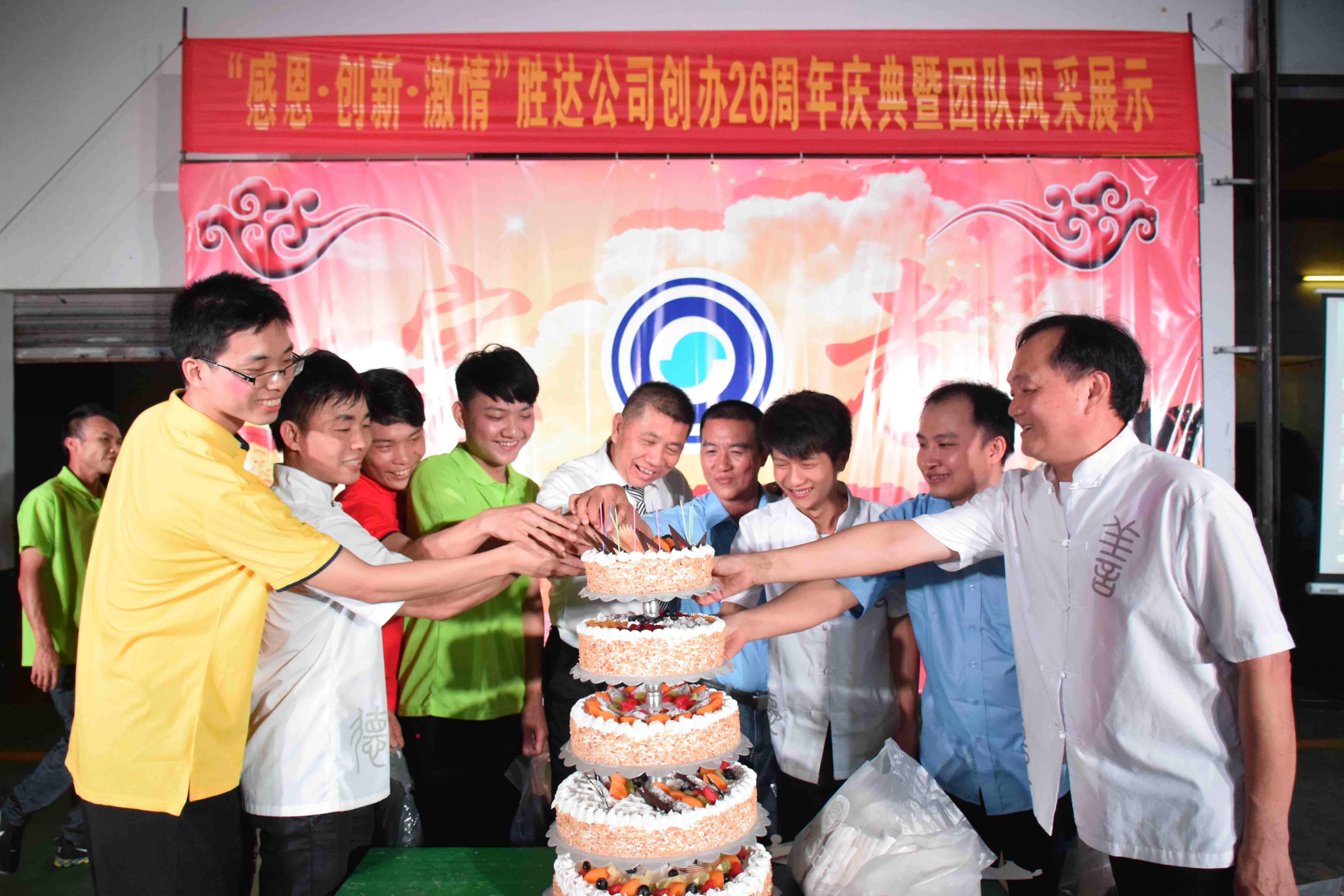 當(dāng)晚,是公司創(chuàng)辦26周年,也就是公司26歲生日,同樣公司也準(zhǔn)備了每月一度精心別致的集體生日會為八月生日的員工慶生。由勝達(dá)公司董事長、總經(jīng)理陳丁勝先生并帶領(lǐng)在場所有的勝達(dá)家人及嘉賓,唱起生日祝福歌,為每位生日員工送上一份珍貴而又特別的生日回憶。隨后,陳總為他們送上生日禮物,并攜他們一起切開了象征著祝福與美好的生日蛋糕。