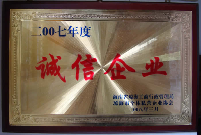 海南省瓊海勝達(dá)汽車銷售服務(wù)有限公司在2008年03月榮獲由: